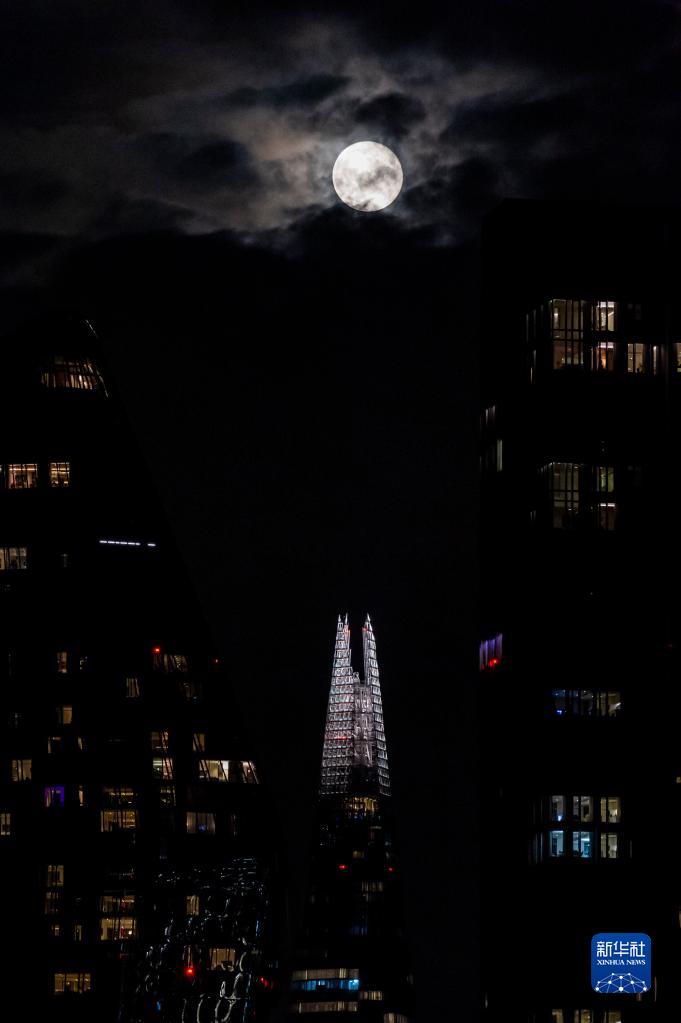9月21日,滿(mǎn)月在英國倫敦的“碎片大廈”上空升起。