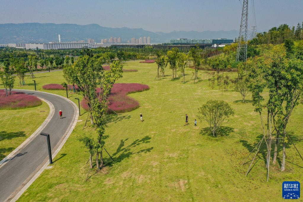 10月2日,人們在重慶市兩江新區粉黛山公園游玩(無(wú)人機照片)。