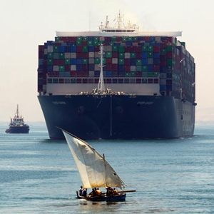 這是7月7日在埃及伊斯梅利亞省拍攝的航行在大苦湖上的“長(cháng)賜”號貨輪。(新華社發(fā),艾哈邁德·戈馬攝)