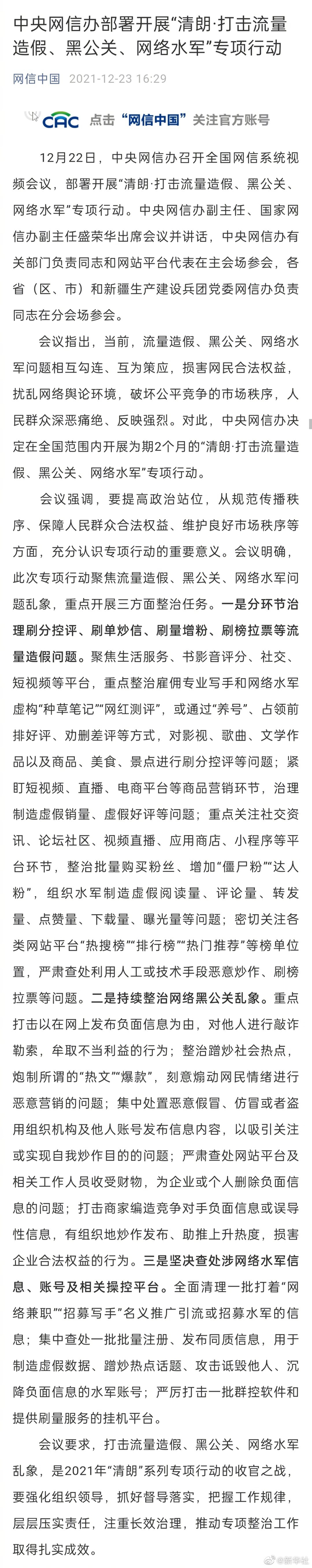 中央網(wǎng)信辦打擊流量造假黑公關(guān)和網(wǎng)絡(luò )水軍