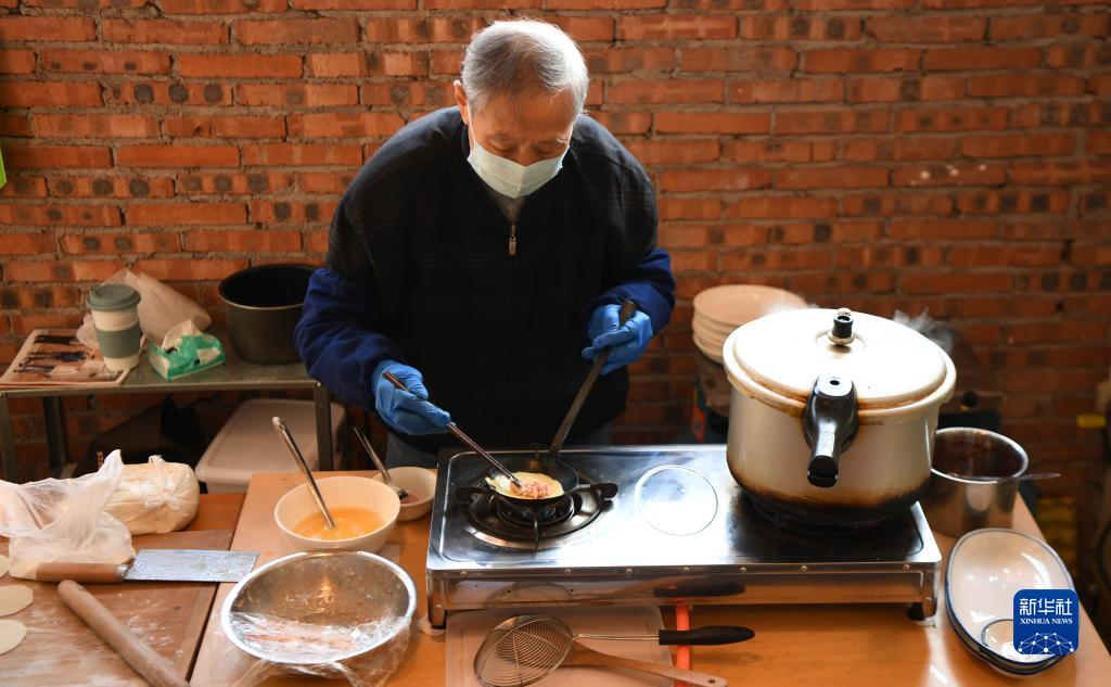 12月22日,余國基在寶南飯店制作手工蛋餃。新華社記者 薛宇舸 攝