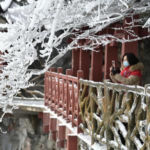 這是12月27日在湖南省衡陽(yáng)市南岳風(fēng)景區拍攝的雪景。