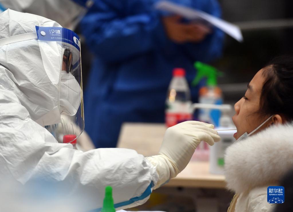 1月7日,在鄭州市經(jīng)八路一核酸檢測點(diǎn),市民接受核酸檢測取樣。