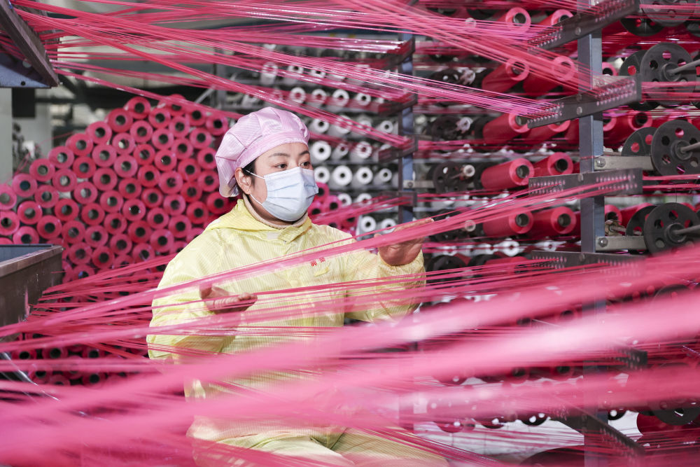1月4日,一名工人在江蘇連云港一家編織袋生產(chǎn)企業(yè)的流水線(xiàn)上作業(yè)。新華社發(fā)(王春 攝)
