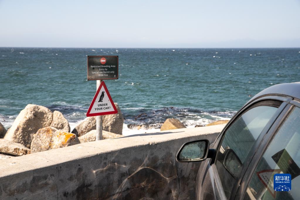 這是2月5日在南非西蒙鎮拍攝的提醒司機注意車(chē)底企鵝的警示牌。