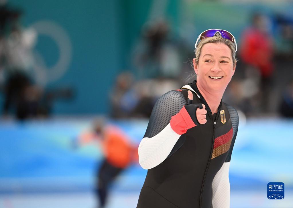 2月5日,德國選手克勞迪婭·佩希施泰因在速度滑冰女子3000米決賽后。新華社記者 武巍 攝