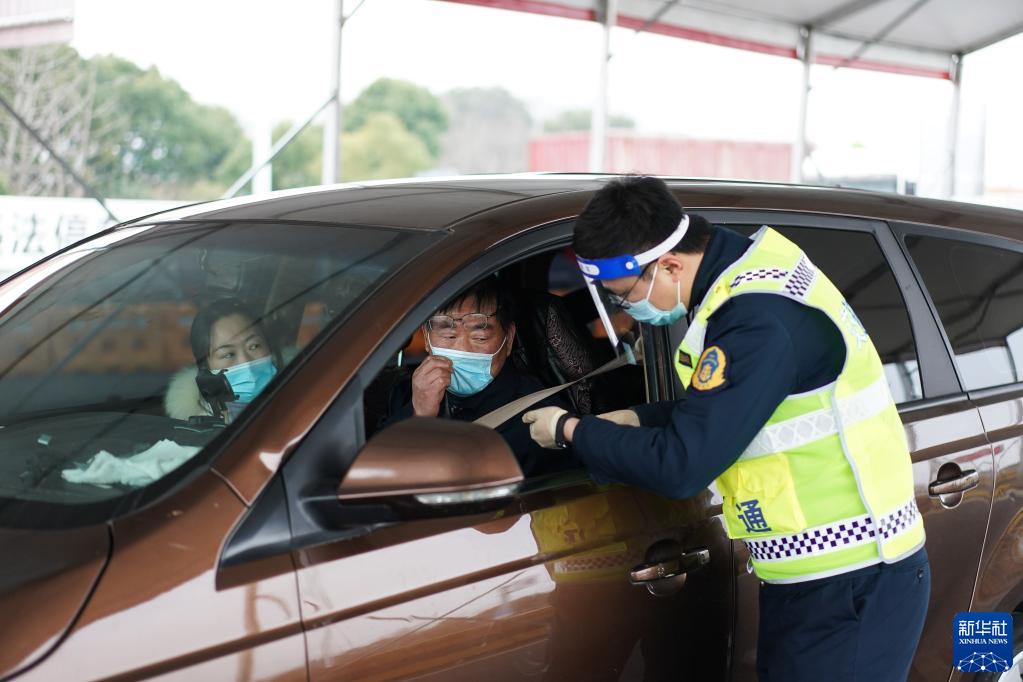 2月15日,車(chē)輛駕乘人員在京滬高速公路蘇州新區收費站接受查驗。新華社記者 季春鵬 攝