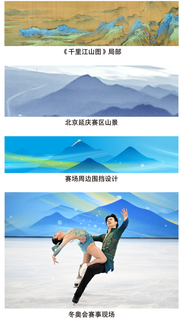 《千里江山圖》在北京冬奧會(huì )場(chǎng)館景觀(guān)設計中的應用示例。
