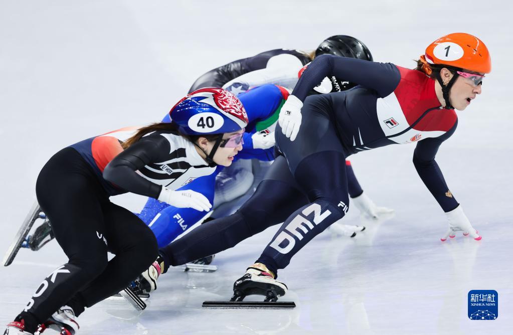 2月11日,荷蘭隊選手蘇珊娜·舒爾廷(右一)在北京2022年冬奧會(huì )短道速滑項目女子1000米決賽中奪得冠軍。新華社記者 蘭紅光 攝