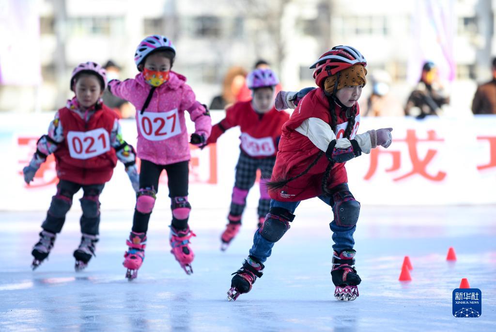 1月15日,小選手們在200米比賽中。當日,“喜迎冬奧 快樂(lè )運動(dòng)”2022年寧夏銀川市第四屆青少年冬季冰雪運動(dòng)會(huì )在湖濱體育場(chǎng)冰場(chǎng)舉行。來(lái)自全市13個(gè)代表隊的110多名選手參加比賽。新華社記者 馮開(kāi)華 攝