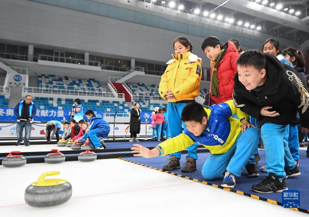 2019年12月10日,北京史家實(shí)驗學(xué)校的學(xué)生在“冰立方”體驗冰壺。新華社記者 鞠煥宗 攝