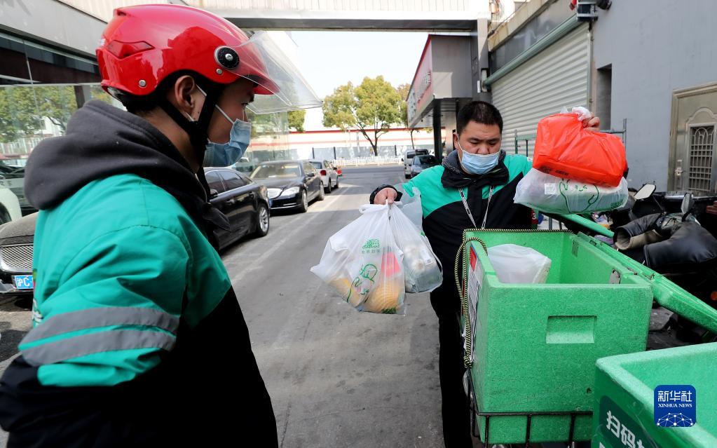 3月15日,吉林省吉林市昌邑區興華街道中興社區網(wǎng)格員宋冉為隔離居民運送生活物資。新華社記者 張楠 攝