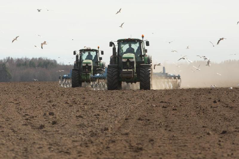 2021年4月15日,農民在俄羅斯列寧格勒州一農場(chǎng)內播種春小麥。新華社發(fā)(莫京娜攝)