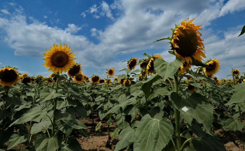 這是2019年7月9日在烏克蘭南部敖德薩州拍攝的盛開(kāi)的葵花。烏克蘭盛產(chǎn)葵花,葵花籽油產(chǎn)量和出口量世界排名第一。新華社記者陳俊鋒攝