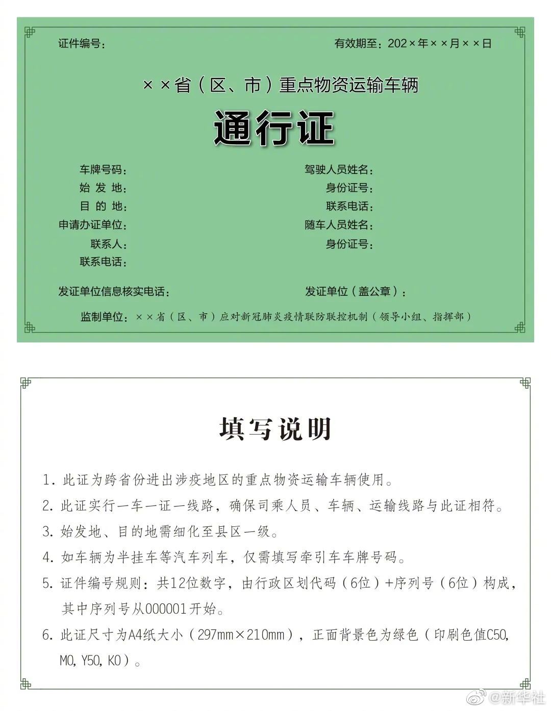 全國統一式樣重點(diǎn)物資運輸車(chē)輛通行證公布
