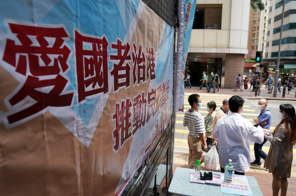 2021年9月21日,香港街頭舉辦“落實(shí)愛(ài)國者治港 推動(dòng)良政善治”街站宣傳活動(dòng)。 新華社記者 李鋼 攝