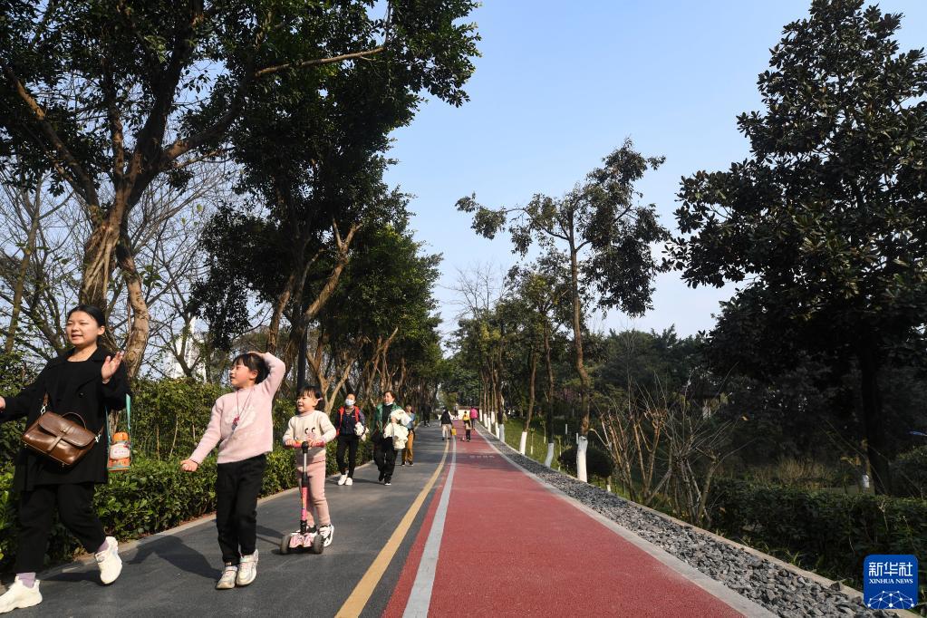 市民和游客在重慶市大渡口區重鋼崖線(xiàn)山城步道游覽(2022年2月15日攝)。新華社記者 王全超 攝