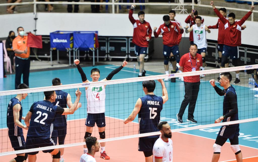 第四局,巴林隊提高了發(fā)球成功率,中國隊幾次將比分拉開(kāi)都被對手追上。局末時(shí)刻,中國隊主攻張景胤發(fā)揮了關(guān)鍵作用,他先是單人攔網(wǎng)成功,將中國隊領(lǐng)先優(yōu)勢擴大到23:21;隨后,他又在中國隊防守成功后扣球得分,為中國隊拿到賽點(diǎn);最后,又是張景胤扣球得分將比分鎖定在25:22,帶領(lǐng)中國隊以3:1獲勝。