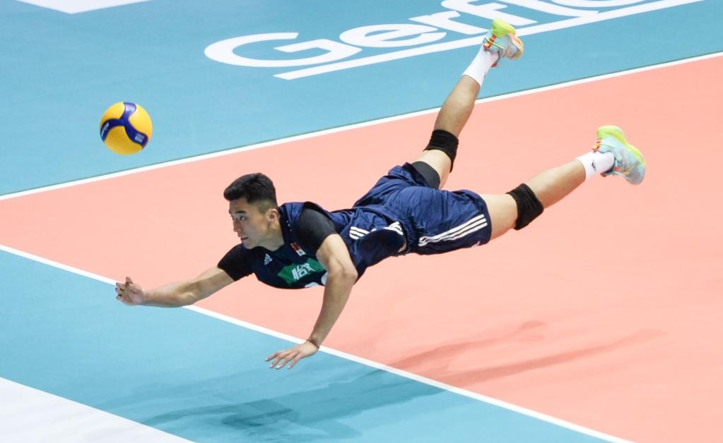 8月9日,中國隊球員張景胤在比賽中救球。新華社發(fā)(拉亨攝)