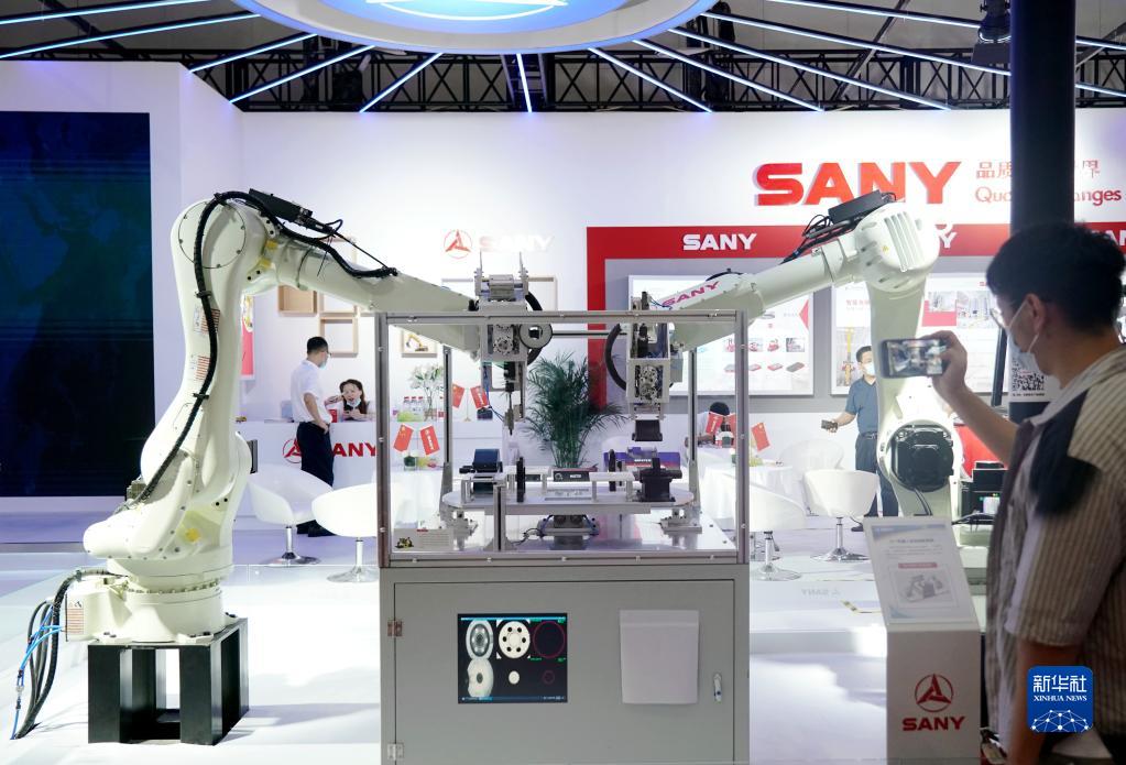 這是8月18日在2022世界機器人博覽會(huì )上拍攝的工業(yè)機器人。新華社記者 張晨霖 攝