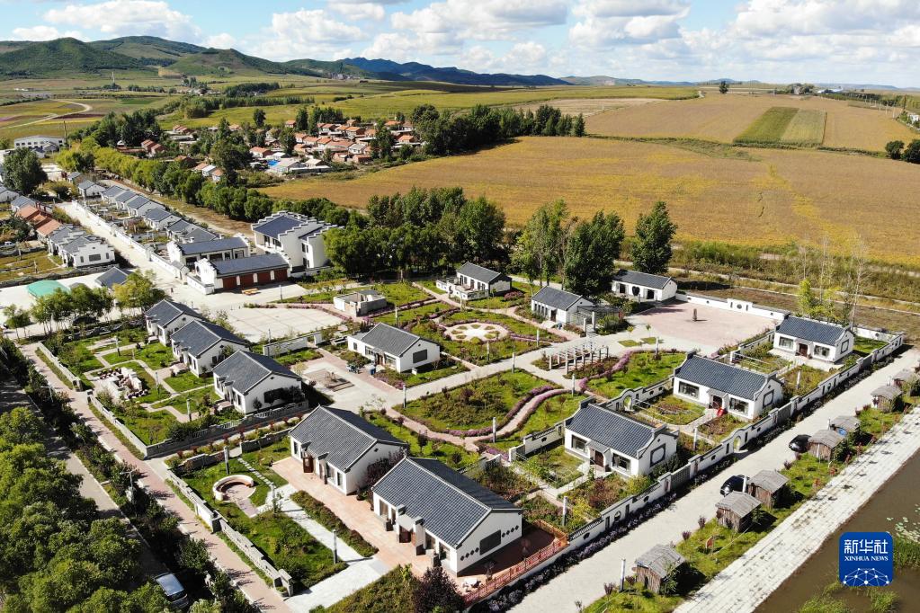9月19日拍攝的黑龍江勃利縣勃利鎮元明村“寒地中草藥小鎮”(無(wú)人機照片)?!昂刂胁菟幮℃偂蹦壳罢谠囘\營(yíng)中,這里將被打造成集中醫康養、游學(xué)研學(xué)、觀(guān)光度假為一體的中藥主題集群。