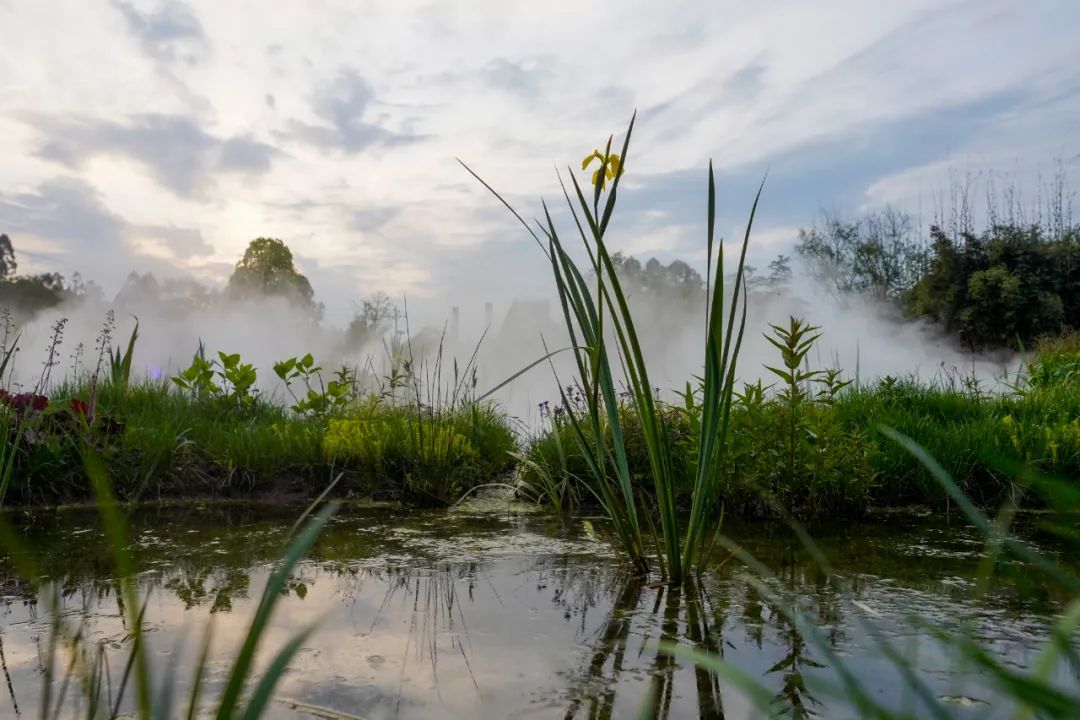 重慶市梁平區雙桂湖畔三峽竹博園內的小微濕地景觀(guān)。新華社記者劉潺攝
