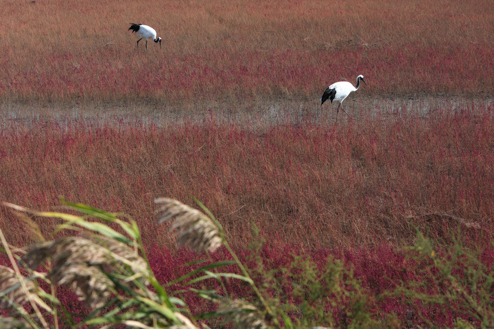 在位于盤(pán)錦的遼河三角洲濕地,特殊環(huán)境孕育出的堿蓬草鋪滿(mǎn)灘涂,一到秋天這里就成了“紅色海岸線(xiàn)”。新華社記者王乙杰攝
