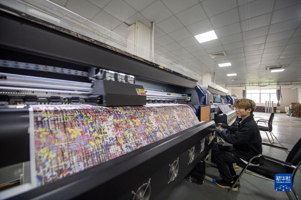 11月2日,工作人員在柯橋區的浙江大樹(shù)紡織科技有限公司的印花車(chē)間內工作。