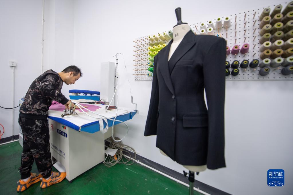 11月2日,工作人員在柯橋區一家紡織產(chǎn)業(yè)公司的車(chē)間內試制樣衣。