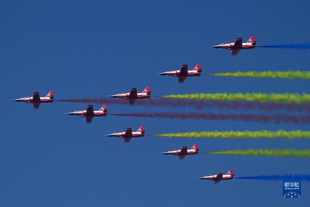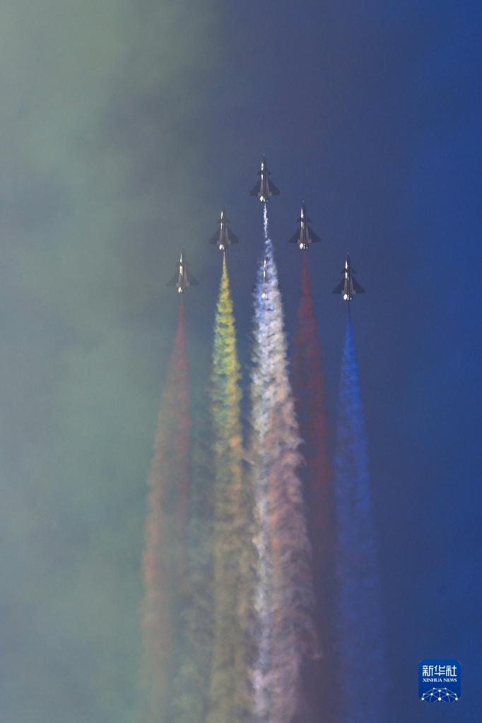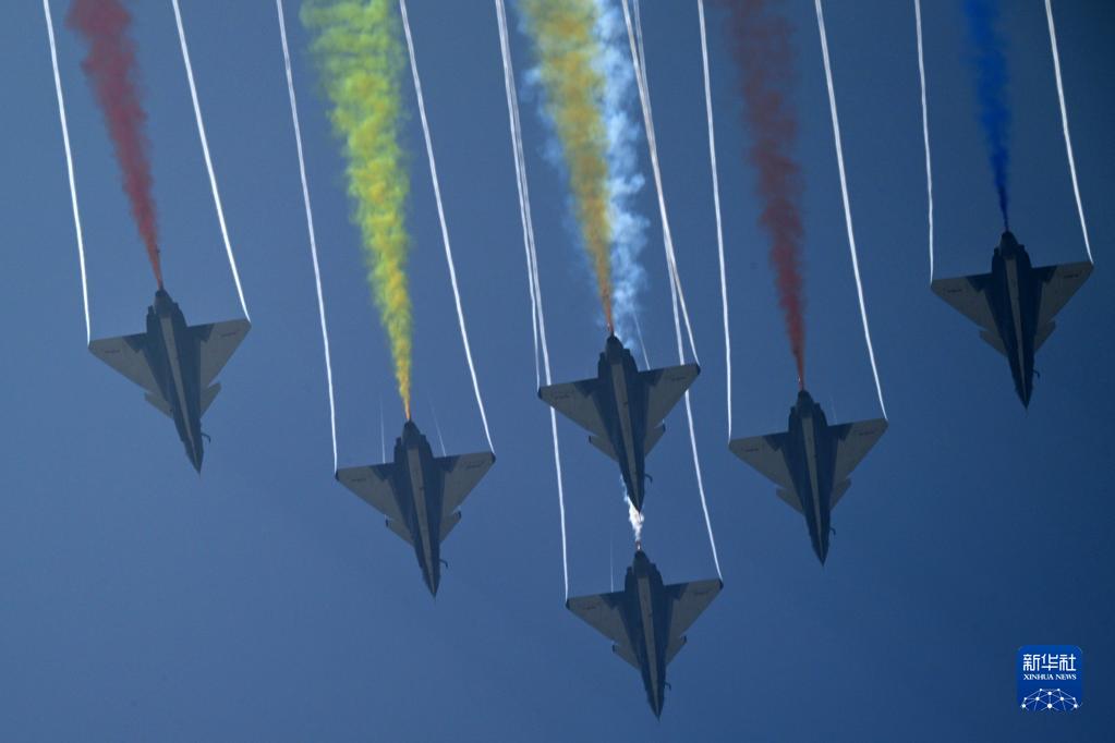 11月13日,第十四屆中國航展閉幕當天,空軍八一飛行表演隊進(jìn)行飛行表演。新華社發(fā)(余紅春 攝)