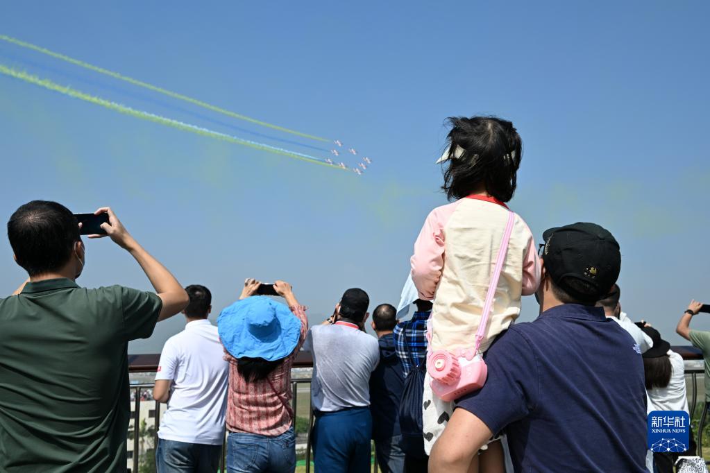 11月13日,第十四屆中國航展閉幕當天,觀(guān)眾在現場(chǎng)觀(guān)看飛行表演。新華社發(fā)(余紅春 攝)