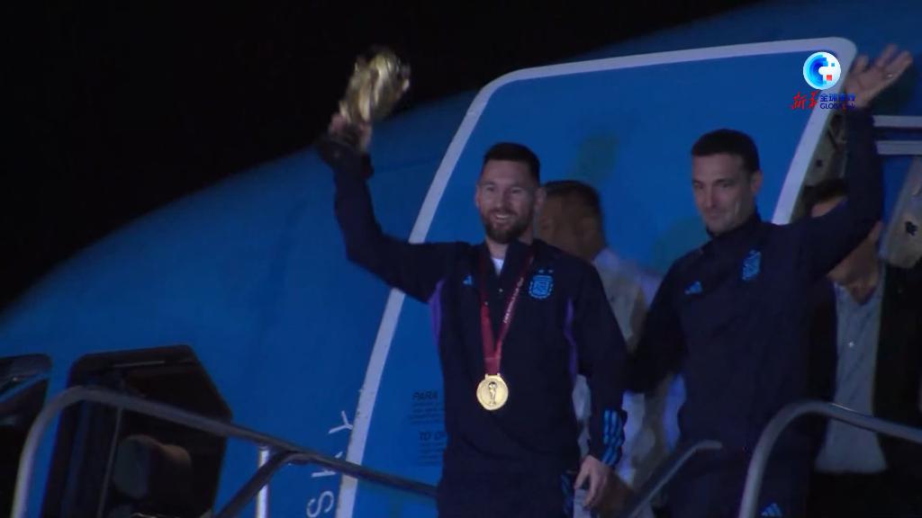 全球連線(xiàn)|世界杯冠軍阿根廷隊乘專(zhuān)機回家 獲過(guò)水門(mén)禮遇