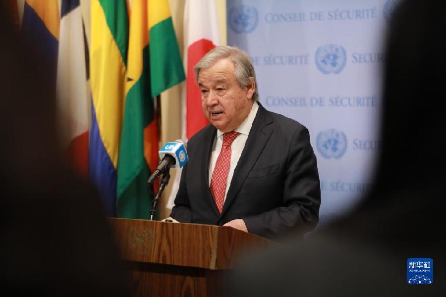 2月9日,在位于紐約的聯(lián)合國總部,聯(lián)合國秘書(shū)長(cháng)古特雷斯發(fā)表講話(huà)。新華社記者 謝鍔 攝