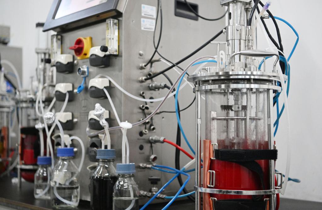 走進(jìn)天津大學(xué)(武清)前沿技術(shù)研究院合成生物學(xué)實(shí)驗室,多通道發(fā)酵罐內,攪拌槳快速旋轉,釀酒酵母細胞工廠(chǎng)正在源源不斷生產(chǎn)番茄紅素,空氣中彌漫著(zhù)一股醇香的味道。