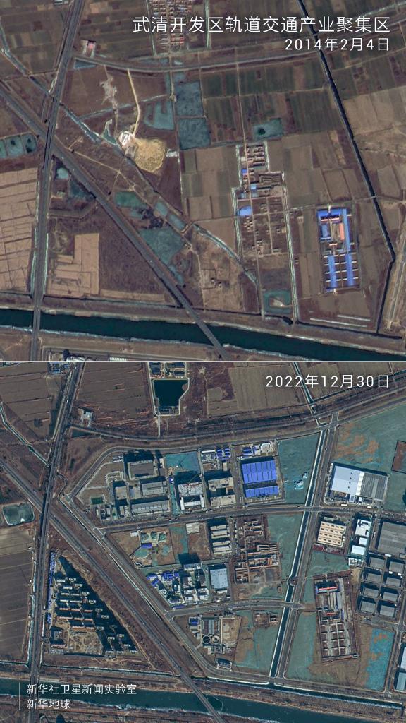 衛星拍攝的武清開(kāi)發(fā)區軌道交通產(chǎn)業(yè)聚集區對比圖