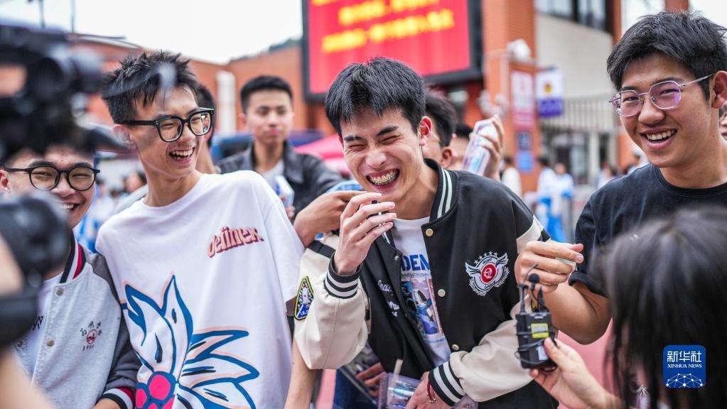 6月8日,在貴陽(yáng)市烏當中學(xué)考點(diǎn),考生結束考試后在考場(chǎng)外慶祝。