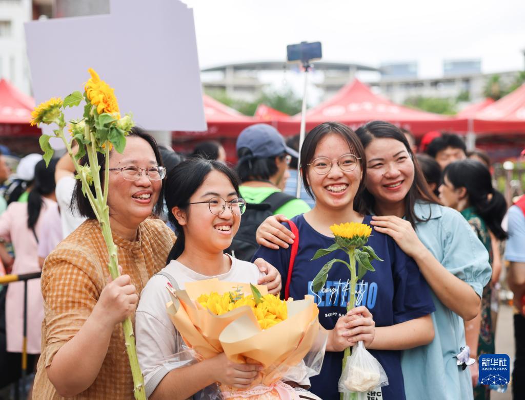 6月8日,考生和家長(cháng)在南寧市第二中學(xué)鳳嶺校區考點(diǎn)門(mén)口合影。