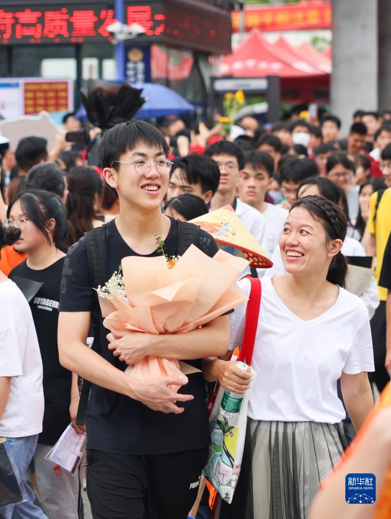 6月8日,在南寧市第二中學(xué)鳳嶺校區考點(diǎn)門(mén)口,考生和家長(cháng)交談。