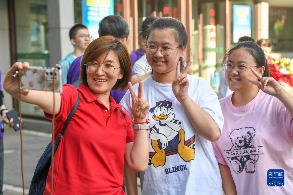 6月8日,在位于長(cháng)春市的東北師大附中考點(diǎn),考生與教師合影留念。