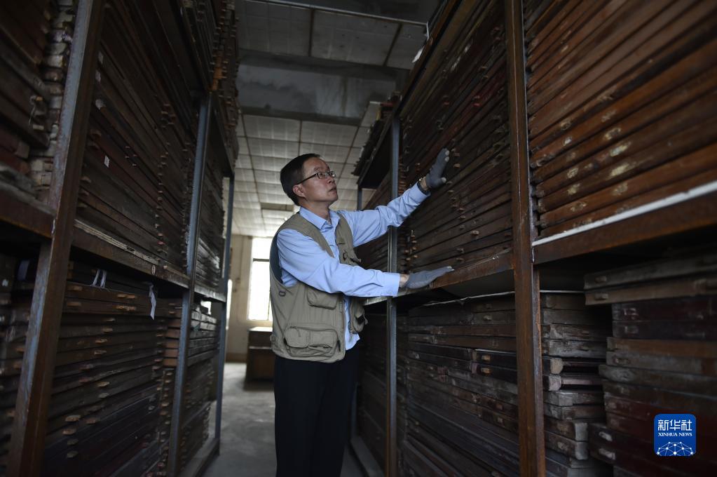 6月7日,張俊濤在庫房?jì)日碜约菏占募矣脗鹘y木雕。