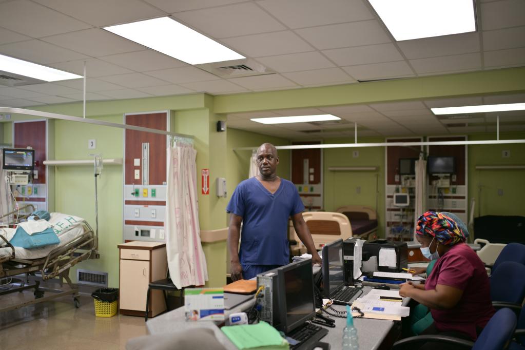 6月1日,在巴巴多斯首都布里奇敦,巴巴多斯伊麗莎白女王醫院醫療服務(wù)主管安東尼·哈里斯接受新華社記者采訪(fǎng)。新華社記者 辛悅衛 攝