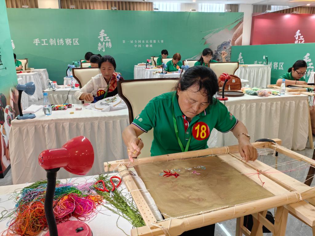 本屆大賽主題為“塑匠心育人才,強產(chǎn)業(yè)促振興”,由農業(yè)農村部、人力資源社會(huì )保障部、共青團中央、全國婦聯(lián)共同主辦。來(lái)自全國31個(gè)?。▍^、市)和新疆生產(chǎn)建設兵團的300名選手圍繞手工刺繡、手工編織、手工剪紙、泥塑、面花制作、農民畫(huà)這6個(gè)比賽項目展開(kāi)角逐,交流展示農民的智慧和創(chuàng )造。