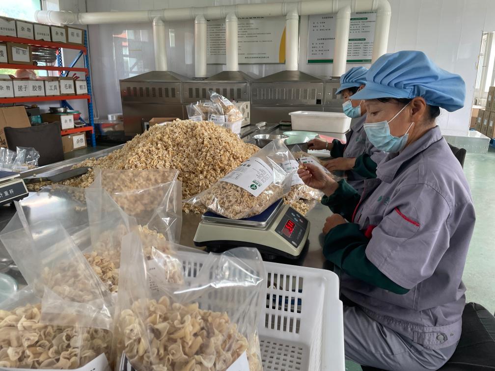 在黑龍江北貨郎森林食品有限公司,黑木耳、猴頭菇、白木耳等產(chǎn)品擺滿(mǎn)了公司展廳。在生產(chǎn)車(chē)間,工作人員正仔細稱(chēng)重產(chǎn)品,并打包裝袋。