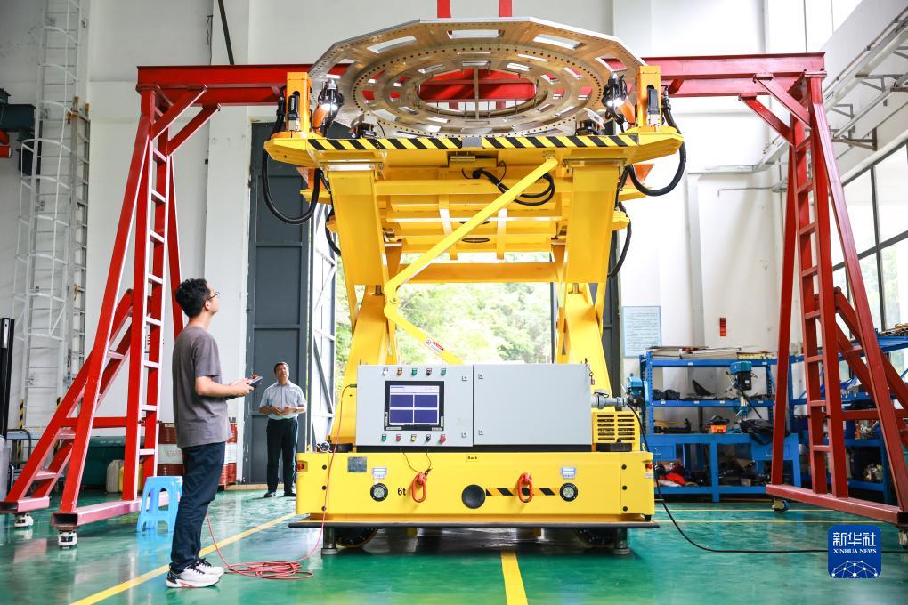 7月25日,工作人員在調試反射面激光靶標維護機器人。新華社記者 歐東衢 攝
