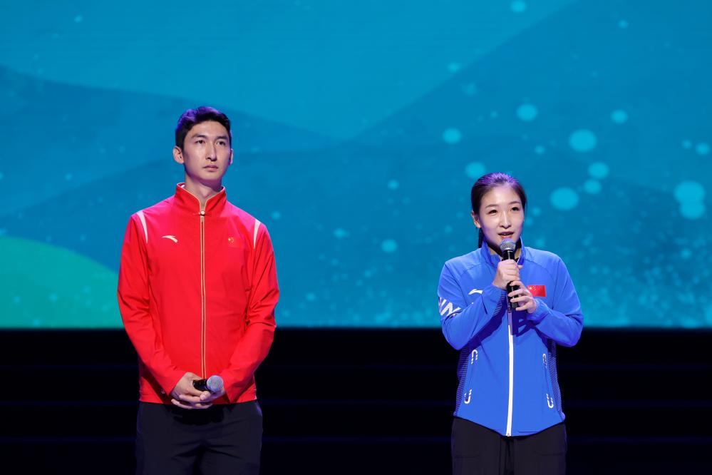 在優(yōu)秀運動(dòng)員交流環(huán)節,奧運冠軍武大靖和劉詩(shī)雯向在場(chǎng)的大學(xué)生運動(dòng)員回顧了自己運動(dòng)生涯的難忘時(shí)刻。武大靖表示,每當站上賽場(chǎng),為國爭光的榮譽(yù)感都激勵著(zhù)自己全力拼搏。劉詩(shī)雯表示,頑強拼搏和團結協(xié)作是中國乒乓球隊的優(yōu)秀傳統,也為中華體育精神增添了光彩。兩人還鼓勵大學(xué)生運動(dòng)員通過(guò)成都大運會(huì )更好地感受中國文化的精彩。