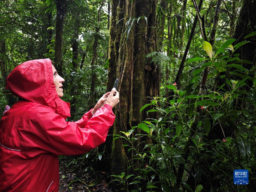 7月24日,一名游客在哥斯達黎加蒙特韋德云霧森林生物保護區內欣賞森林中的植物。新華社記者 范小林 攝