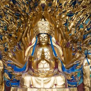 “這是我第一次看到有千只手的千手觀(guān)音,真的很震撼?!眮?lái)自安徽的游客謝女士駐足在千手觀(guān)音造像前連連稱(chēng)嘆。一般說(shuō)來(lái),觀(guān)音造像只要有十只手,便可稱(chēng)“千手觀(guān)音”。而在重慶大足88平方米的石崖上,卻有一尊擁有千只手的千手觀(guān)音,掌心含有一眼,手中大多執有法器,千姿百態(tài),金碧輝煌。