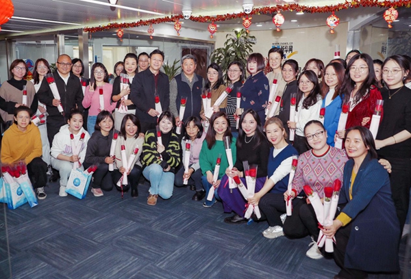 3月8日,儲學(xué)軍同志等公司領(lǐng)導,及工會(huì )、婦委會(huì )向公司女員工送上鮮花等慰問(wèn)品,向大家致以節日問(wèn)候。