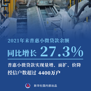 加大對實(shí)體經(jīng)濟特別是小微企業(yè)、科技創(chuàng )新、綠色發(fā)展的支持力度始終是金融工作的重中之重。2021年末,制造業(yè)中長(cháng)期貸款余額同比增長(cháng)31.8%,比各項貸款增速高20.2個(gè)百分點(diǎn);普惠小微貸款余額同比增長(cháng)27.3%,普惠小微貸款授信戶(hù)數超過(guò)4400萬(wàn)戶(hù)。