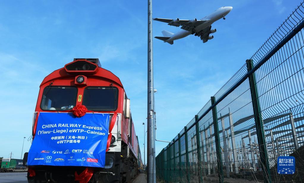 2019年10月25日,滿(mǎn)載著(zhù)82個(gè)標準箱的中歐班列(義烏—列日)“世界電子貿易平臺(eWTP)菜鳥(niǎo)號”首趟列車(chē)抵達比利時(shí)列日物流多式聯(lián)運貨運場(chǎng)站。新華社記者 潘革平 攝